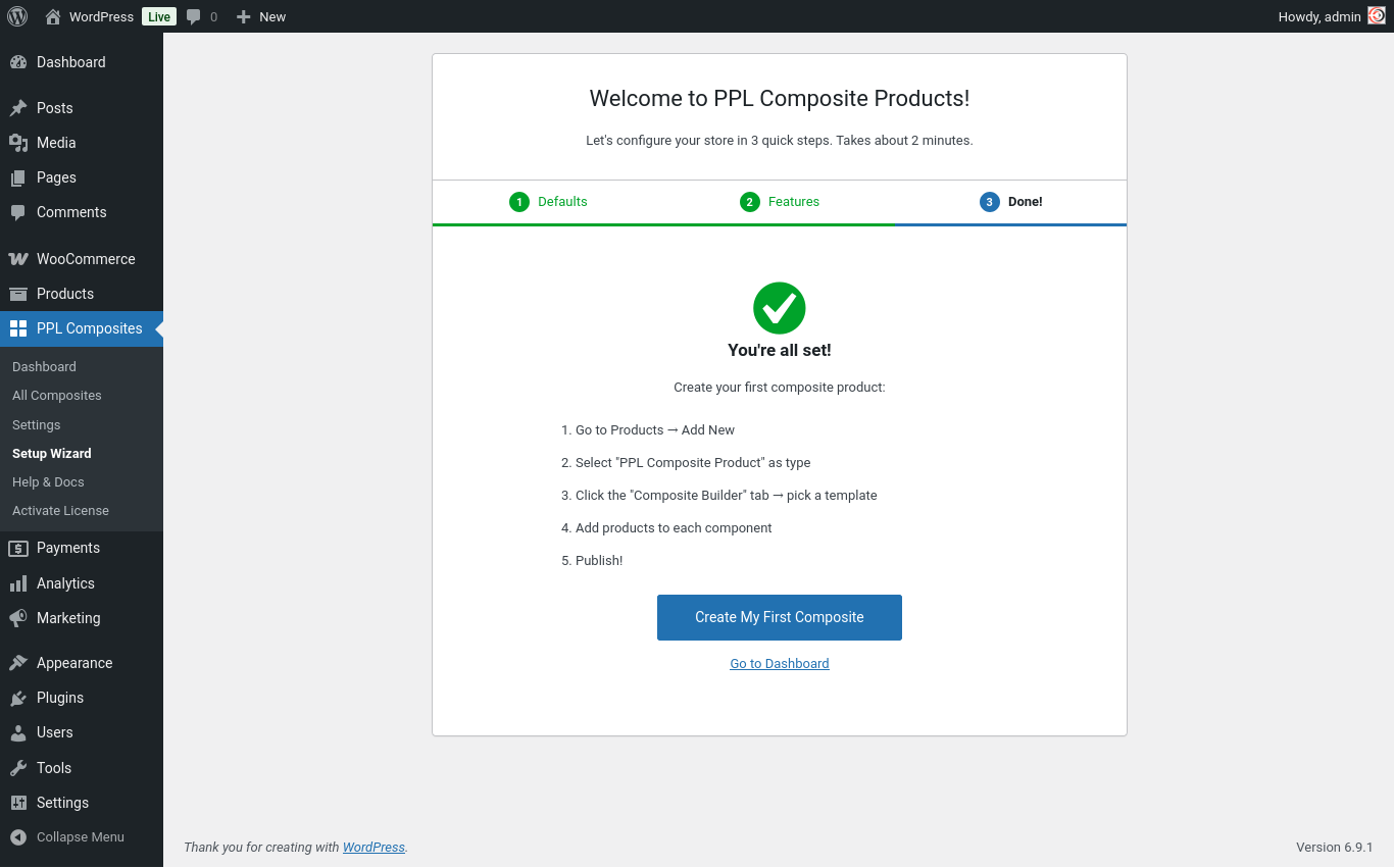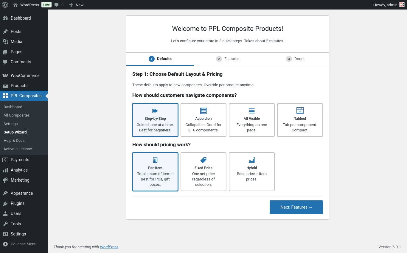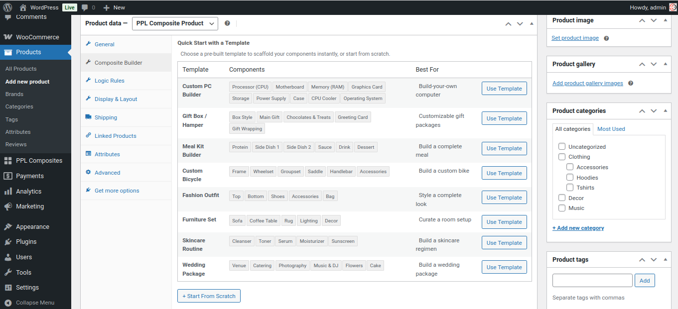 Composite Products lets you sell products where the customer has to make choices before buying. Instead of selling a fixed product, you define components — and the customer picks one option from each component to build their own version of the product.