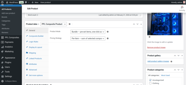 Bundle mode is a simpler version of the composite. You still use components and products, but the choices are made by you, not the customer. You pre-select one product per component, and the product page shows a clean list of what is included.