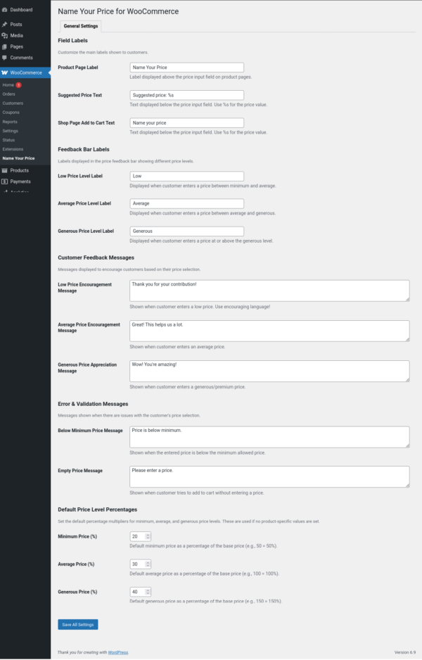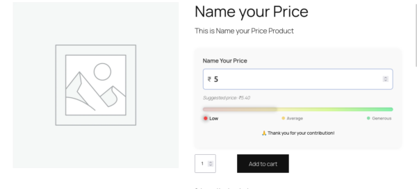 Name Your Price for WooCommerce allows you to sell products using a pay-what-you-want model while still maintaining full control over pricing. Customers can enter the amount they wish to pay, guided by smart price suggestions, visual feedback, and encouraging messages.